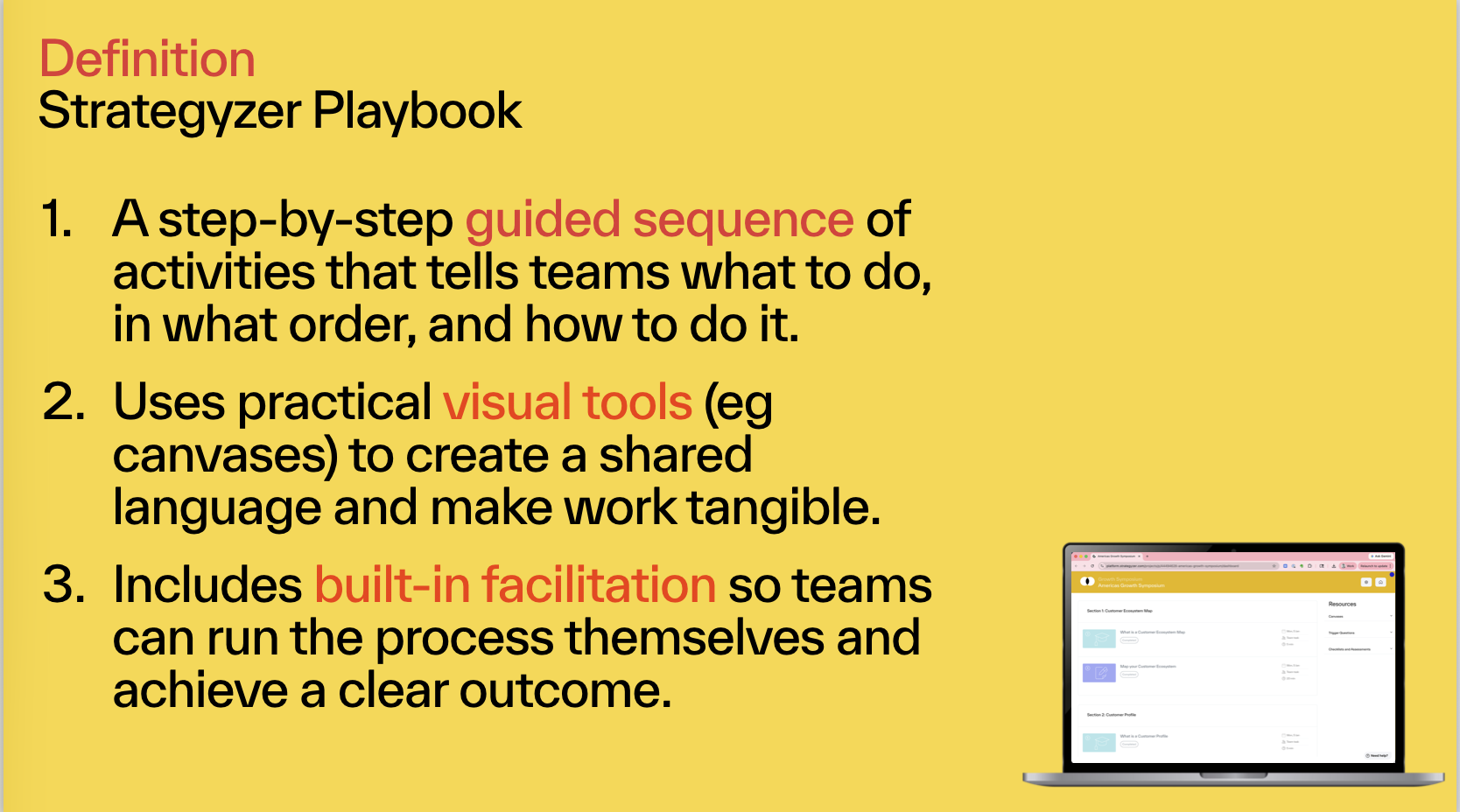 Strategyzer defines a playbook with three elements: